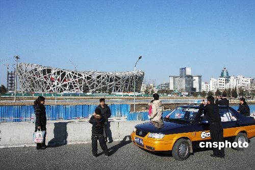2月16日,位于國家體育場--鳥巢南側(cè)的北辰橋上大批市民在拍照留念,形成一道獨特的風(fēng)景線。因高架橋上視野開闊,角度頗佳,所以吸引了眾多拍照者在此駐足留影。圖為一出租車司機也停車在此拍照欣賞一番這獨特的風(fēng)景。中新社發(fā) 鄭雄增 攝