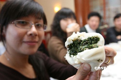 2月16日,北京素食愛好者在品嘗嘉福羅漢素食。當日,由中國佛院建筑文化攝影展組委會主辦的“第二個素食日”------嘉福羅漢素食喜迎春活動,在北京潭柘寺嘉福飯店舉行;顒又校恍┍本┧厥硱酆谜咂穱L了素食,還就素食日的發(fā)展、素食的吃法、做法等進行了交流。據(jù)主辦方介紹,以后每月16日為“素食日”,以此希望有更多的人加入到吃素食行列當中來,從而形成一種健康的飲食新理念。 中新社發(fā) 陳曉根 攝