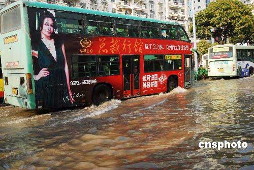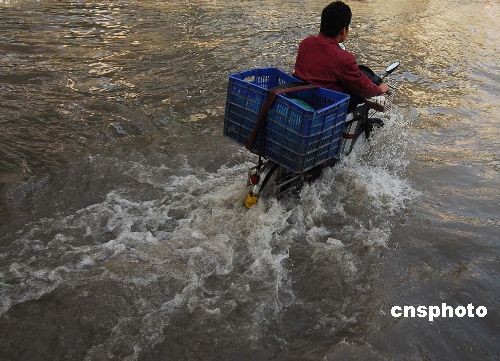 圖:廈門(mén)地下水管被挖破 街頭水流成河