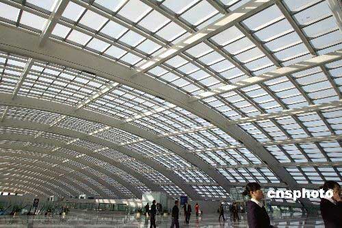 2月29日,北京首都國際機場3號航站樓正式投入運營,圖為樓前地面交通中心。中新社發(fā) 張勤 攝