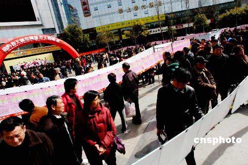 3月2日,江蘇鎮(zhèn)江市大市口廣場(chǎng)舉辦了“萬(wàn)人相親”會(huì)活動(dòng),1000多個(gè)相親簡(jiǎn)歷吸引了眾多市民。中新社發(fā) 陶春 攝