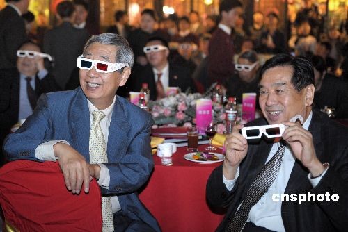 三月八日,全國(guó)人大代表、政協(xié)委員攝影聯(lián)誼會(huì)在北京舉行,兩會(huì)代表委員中的攝影界人士歡聚一堂切磋技藝。十屆全國(guó)人大常委會(huì)副委員長(zhǎng)許嘉璐、十屆全國(guó)政協(xié)副主席李蒙,同大家戴上專(zhuān)用眼鏡觀(guān)看立體攝影作品圖片。中新社發(fā) 廖攀 攝