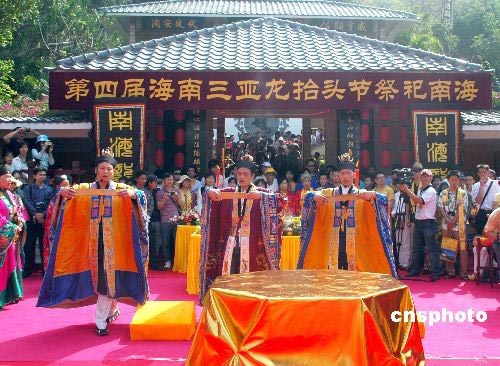 3月9日是中國農(nóng)歷二月初二,民間傳統(tǒng)的龍?zhí)ь^節(jié),中國各地都有不同的習俗祭龍祈福。海南因四面環(huán)海,百姓對此節(jié)日更顯重視。第四屆海南三亞龍?zhí)ь^節(jié)祭祀南海暨三亞“藍絲帶”海洋保護海南行首發(fā)式當天在三亞南山大小洞天景區(qū)隆重舉行。人們舉行莊嚴的道教儀式祭祀南海與南海龍王,祈禱風調(diào)雨順,國泰民安。中新社發(fā) 尹海明 攝