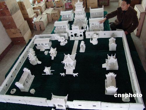 3月8日,江西省景德鎮(zhèn)羅冬根展示作品瓷器群雕《大觀園》。景德鎮(zhèn)陶藝家羅冬根用6年的時(shí)間,制作出面積達(dá)80平方米,主件有300多件的瓷器群雕作品《大觀園》。這部作品由建筑、園林、山水、民俗等部分組成,采用高白泥澀胎瓷制成,取題于《紅樓夢(mèng)》大觀園,取材于蘇州園林和江南徽派建筑。中新社發(fā) 石衛(wèi)明 攝