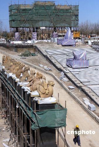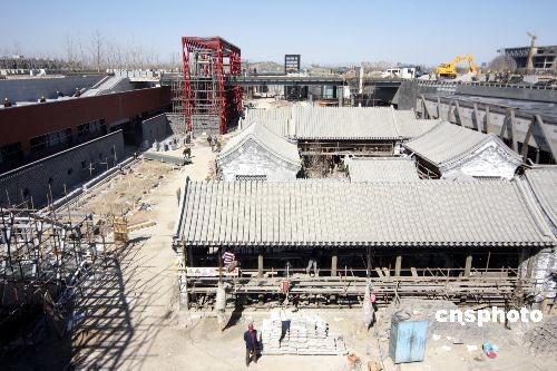 3月13日,極富中國特色的北京奧林匹克公園下沉花園初具規(guī)模。不久,一個充滿東方建筑韻味的院落組合將展現(xiàn)在人們面前。據(jù)悉,建成后的奧林匹克公園下沉花園將展現(xiàn)七個中國特色的院落。從紫禁城的紅墻,到北京的四合院,從歷經(jīng)千年的鼓樂,到盛唐的馬球運動,在這里都有體現(xiàn)。中新社發(fā) 吳芒子 攝
