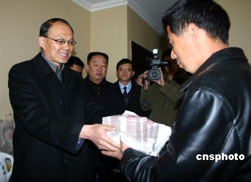 從3月30日起,西藏自治區(qū)政府將陸續(xù)向“3·14”打、砸、搶、燒嚴重暴力事件中無辜喪生者家屬發(fā)放特殊撫恤金,金額為每人二十萬元人民幣。圖為3月30日西藏自治區(qū)政府官員正在向無辜喪生者家屬發(fā)放特殊撫恤。中新社發(fā) 鄒輝 攝