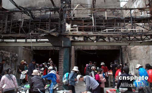 4月12日,昔日繁華似錦的拉薩市朵森格路又恢復了往日的景象。街道上車水馬龍,人來人往,各種商品琳瑯滿目,選購的人們絡繹不絕,盡管在“3.14”暴力事件中許多被焚燒成廢墟的經營大樓還處在修復之中,但整個市場交易已呈現出十分火紅的景象。中新社發(fā) 周波 攝