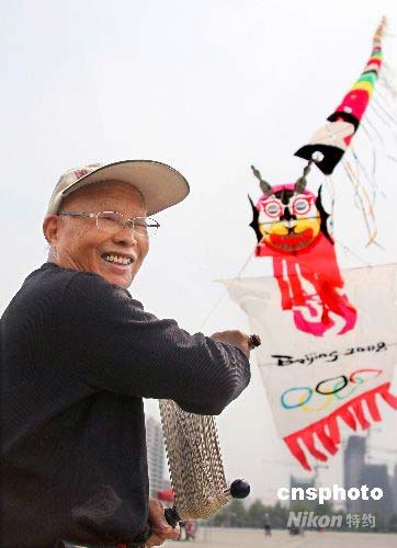 圖:河南76歲老人放飛奧運主題風箏