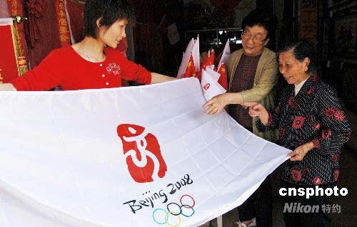 圖:“祥云”將抵泉州 市民熱買奧運(yùn)旗幟