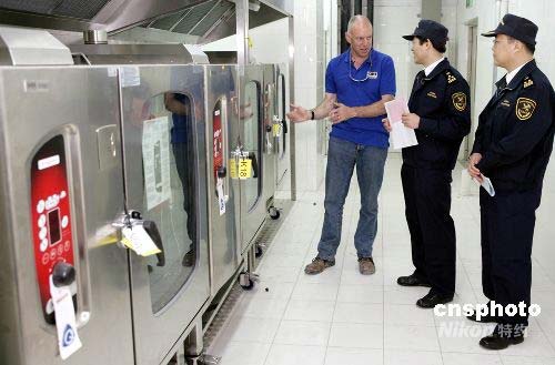 近日,北京海關(guān)在媒體村對(duì)一批奧運(yùn)物資進(jìn)行現(xiàn)場(chǎng)驗(yàn)放。該批物資為奧運(yùn)會(huì)所需的廚房設(shè)備,共計(jì)3個(gè)集裝箱。北京海關(guān)組織24小時(shí)的現(xiàn)場(chǎng)支持,到運(yùn)動(dòng)員村,媒體村,國際廣播中心和新聞媒體中心等各個(gè)現(xiàn)場(chǎng)對(duì)貨物進(jìn)行查驗(yàn)。中新社發(fā) 雷虹 攝