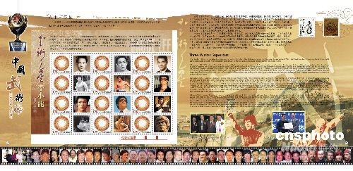 5月9日,全球首部以詳盡介紹武術(shù)發(fā)展為選題的郵票珍藏冊(cè)《中國(guó)武術(shù)》在北京舉行了首發(fā)式。鑒于李小龍將中國(guó)武術(shù)推向世界的貢獻(xiàn),中國(guó)武術(shù)協(xié)會(huì)特意留出一個(gè)版面專門介紹,并首次推出不干膠的李小龍肖像個(gè)性郵票,肯定了其在武術(shù)界的地位。中新社發(fā) 王歡 攝