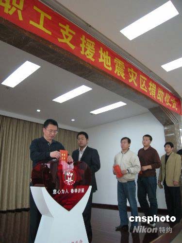 5月12日四川發(fā)生強烈地震后,遼寧民眾情牽災區(qū)。從5月14日開始,遼寧各企事業(yè)單位干部和職工紛紛踴躍捐款,支援四川抗震救災。圖為14日上午,遼寧省民政廳300余名干部和職工熱心捐款。中新社發(fā) 沈殿成 攝