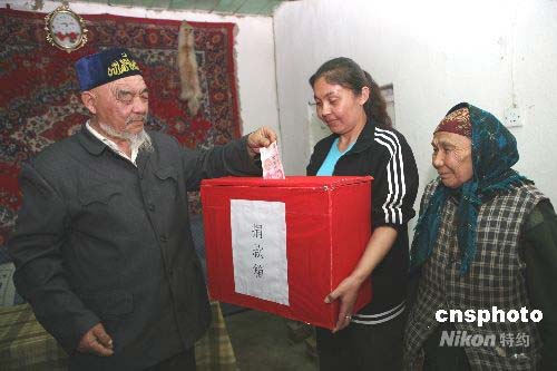 5月13日,阿勒泰市巴里巴蓋鄉(xiāng)舉行為四川地震災(zāi)區(qū)捐獻愛心活動,希望在全國各族人民的幫助和支援下,四川人民能克服困難,早日重建家園。中新社發(fā) 葉爾江 攝