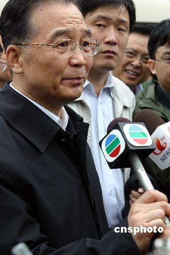 圖:溫家寶在北川指揮現(xiàn)場(chǎng)答香港記者提問