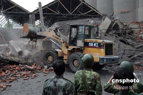 5月14日,據(jù)抗震救災前線的最新消息,救援隊伍已經(jīng)進入四川重災區(qū)的所有市縣。圖為空降兵配合重型機械在什邡洛水拯救被掩埋的群眾。中新社發(fā) 譚超 攝