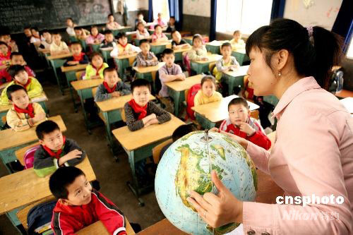 5月15日上午,四川華鎣市雙河二小的學(xué)生在聽取老師講解地球知識。當(dāng)日,在四川省汶川5.12持大地震災(zāi)害中波及受災(zāi)、己停課兩天半的華鎣市,經(jīng)嚴(yán)格檢查鑒定符合安全要求的學(xué)校全面復(fù)課,并向?qū)W生傳授地球和震災(zāi)避險自救知識,提高其自我保護能力。中新社發(fā) 邱海鷹 攝