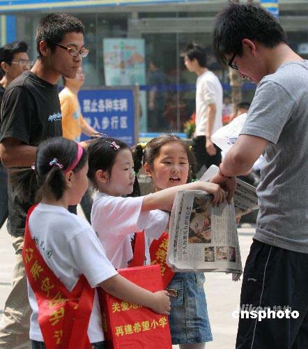圖:南京兒童義賣報紙捐助災(zāi)區(qū)小朋友