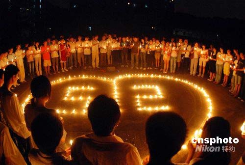 圖:大學生手捧蠟燭為災(zāi)區(qū)祈禱