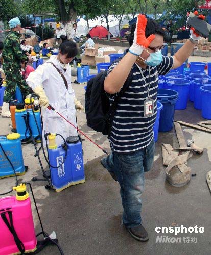 圖:四川地震災(zāi)區(qū)展開消毒防疫
