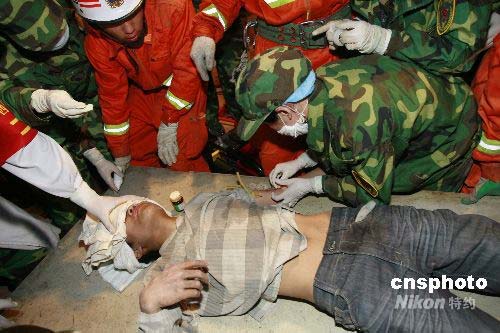圖:四川官兵成功營救被困105小時幸存者