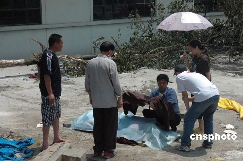 53歲的四川綿竹東方汽輪機(jī)廠女職工王發(fā)珍創(chuàng)造了生命最光輝奇跡,她在汶川大地震當(dāng)天被埋在六層樓房下,七天之后的5月19日上午被搶救出來,還呼喊著救命,但終因搶救無效死亡。圖為她的兒子(右二)用一件衣服為母親遺體遮擋太陽(yáng),久久不愿離去。中新社發(fā) 肖龍聯(lián) 攝