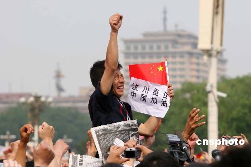 全國哀悼日:四川籍男子天安門廣場為家鄉(xiāng)加油