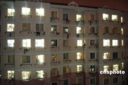 五月十九日夜晚,復(fù)旦大學校園內(nèi)的一幢學生宿舍樓內(nèi),學生們用各自房間燈光的明滅構(gòu)成“五·一二”字樣,以悼念在五月十二日發(fā)生的汶川大地震中遇難的同胞。中新社發(fā) 段更強 攝