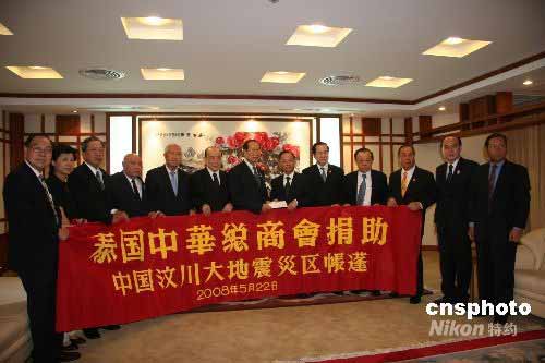 中國汶川大地震的災(zāi)情一直令泰國華人華僑關(guān)心,災(zāi)情發(fā)生以來,僑界捐款源源不斷。泰國中華總商會5月22日向地震災(zāi)區(qū)捐助兩千多套帳篷,成為泰國社會捐助地震災(zāi)區(qū)的第一批物資。這些帳篷將在近日通過中國駐泰大使館轉(zhuǎn)運(yùn)災(zāi)區(qū)。中新社發(fā) 顧時(shí)宏 攝