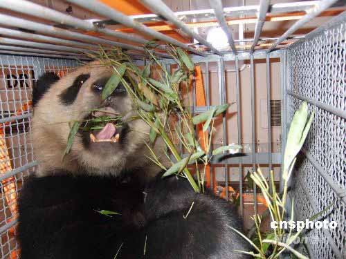 圖:進(jìn)京大熊貓在恒溫專機(jī)上用餐