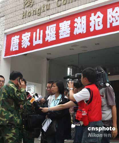 根據(jù)氣象預報,25至26日四川地震災區(qū)將出現(xiàn)強降雨,唐家山堰塞湖險情嚴峻,25日中午,救災部隊高級將領(左)在綿陽指揮部用手機通話布置最新應急方案。中新社發(fā) 趙振清 攝