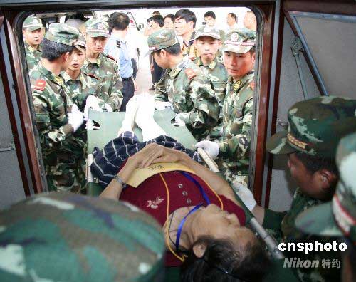 圖:首批130名四川災(zāi)區(qū)傷員抵達(dá)江蘇徐州