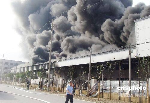 5月31日下午16時許,蘇州市吳江黎里鎮(zhèn)黎民北路一家電子廠突發(fā)大火;馂(zāi)發(fā)生后,廠內(nèi)員工被緊急疏散,近百名消防官兵經(jīng)過近4小時的奮力撲救,于當(dāng)晚9點45分徹底撲滅大火;馂(zāi)過火面積近千平方米。目前,火災(zāi)原因還在調(diào)查中,無人員傷亡報告。中新社發(fā) 蘇民 攝