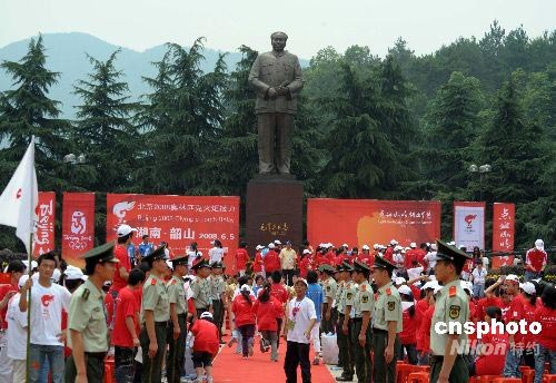 6月5日,奧運(yùn)圣火湖南湘潭、韶山站傳遞結(jié)束慶典,在韶山的毛澤東銅像廣場舉行。儀式結(jié)束后,民眾仍久久不愿離去。中新社發(fā) 廖攀 攝