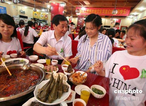 圖:地震傷員在重慶吃火鍋過端午