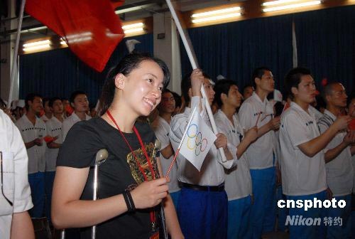 6月19日,殘疾少女、奧運(yùn)火炬手金晶來(lái)到上海市未成年犯管教所,與“失足少年”暢談傳遞奧運(yùn)火炬心得,她希望奧運(yùn)精神能使“大墻內(nèi)的少年們”得到靈魂的洗禮。中新社發(fā) 張亨偉 攝