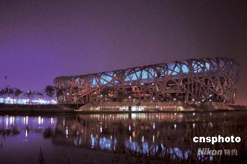 奧運離中國國人越來越近,6月下旬,奧運主要場館——“鳥巢”因加緊調(diào)試燈光系統(tǒng)而停止外部的照明,但加緊開幕式排演的燈光卻要亮到深夜。 中新社發(fā) 楊佐桓 攝