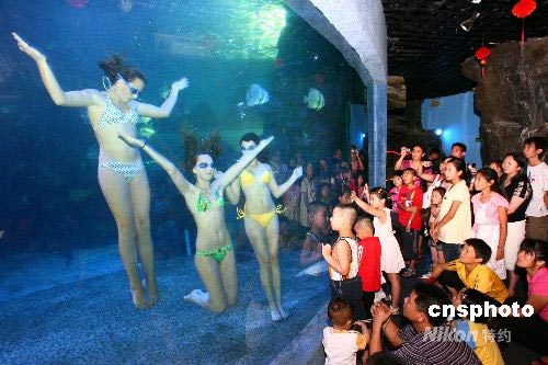 6月27日開(kāi)始,福州左海海底世界再次邀請(qǐng)俄羅斯水中運(yùn)動(dòng)員前來(lái)表演,他們向市民們展示富有世界盛名的花樣游泳——水下芭蕾,促進(jìn)市民們更加關(guān)注奧運(yùn)賽事。據(jù)介紹,本次表演隊(duì)來(lái)自俄羅斯遠(yuǎn)東奧林匹克運(yùn)動(dòng)中心,她們年齡在14-20歲,是專業(yè)的花樣游泳運(yùn)動(dòng)員,從四歲起就進(jìn)行了形體、舞蹈、體操芭蕾等方面的專業(yè)訓(xùn)練,曾榮獲俄羅斯花樣游泳錦標(biāo)賽青少年組第二名。 在左海海底隧道大鯊魚展池中,俄羅斯姑娘們不帶任何潛水裝備,憑著自己高超的水中技能,共同完成一個(gè)又一個(gè)高難度的動(dòng)作,綻放的石榴花、佛座蓮花、芙蓉盛開(kāi)、穿梭時(shí)空、南海觀音、轉(zhuǎn)體720度等形體造型定變幻多姿,精彩絕倫。中新社發(fā) 祝敏松 攝