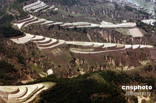 鳥瞰中國西部特有的黃土高原豪邁柔情,7月2日,奧運(yùn)圣火將來到陜西延安進(jìn)行傳遞。中新社發(fā) 廖攀 攝