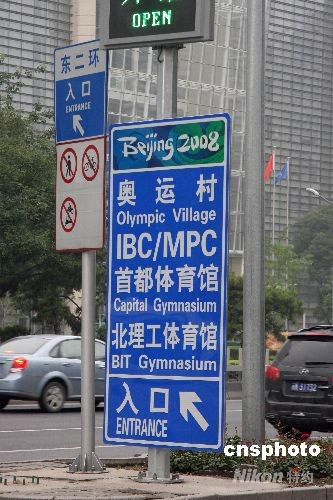 圖:奧運(yùn)專(zhuān)用指路標(biāo)識(shí)亮相北京街頭