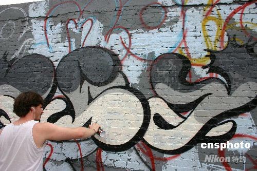 日前,在北京798藝術院區(qū)南側部分外墻被一些年輕的藝術家們裝扮繪制成了奧運文化墻,構圖色彩十分醒目,甚是好看。中新社發(fā) 郭海鵬 攝