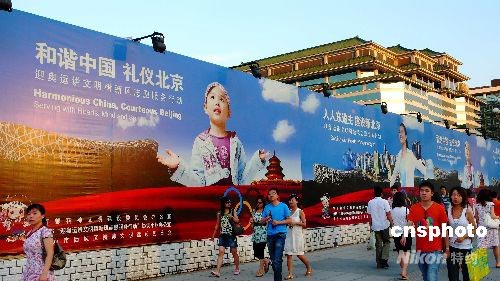 7月6日,北京西單街頭奧運(yùn)宣傳畫格外引人注目。隨著奧運(yùn)會臨近,北京大街小巷的奧運(yùn)氣息越來越濃。 中新社發(fā) 張愛東 攝