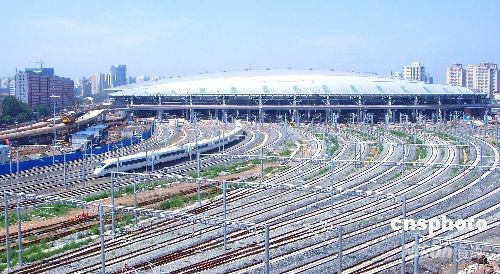 7月6日,北京新南站在藍(lán)天的映襯下顯得更加美麗壯觀。當(dāng)日上午,京津兩地記者以及邀請到的市民代表200多人登上列車,從北京南站出發(fā),平穩(wěn)運(yùn)行32分鐘后,于9點(diǎn)28分到達(dá)天津站,順利完成列車的首次載客試運(yùn)營。中新社發(fā) 玉龍 攝