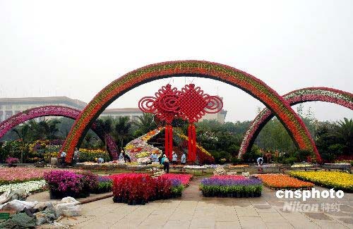7月25日,北京天安門廣場西側(cè)以彩虹門和中國結(jié)的組合造型花壇亮相,具有獨(dú)特的中國風(fēng)味,吸引眾多游客。據(jù)了解,今年天安門廣場花壇創(chuàng)下歷年之最,持續(xù)時(shí)間最長,花材用料最多,達(dá)到100萬盆,80余種。中新社發(fā) 張雙雙 攝