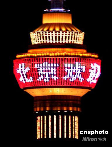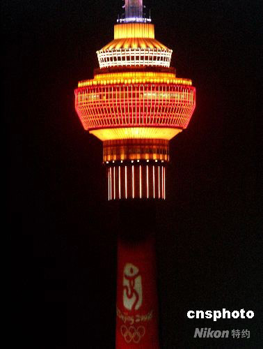 8月1日晚,北京中央電視塔奧運(yùn)主題夜景燈光以“燈籠”造型為主體,將405米高的世界高塔裝扮得美輪美奐,無(wú)比壯觀,成為京西一道綺麗奪目的風(fēng)景。中新社發(fā) 趙振清 攝