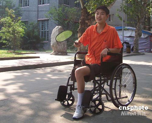 9月5日,受中國(guó)殘疾人聯(lián)合會(huì)邀請(qǐng),在四川汶川大地震中受傷的四位少年赴北京參加殘奧會(huì)開幕式。圖為4日下午,在華西醫(yī)院地震傷員康復(fù)中心,來(lái)自北川中學(xué)的十七歲少年王飛正在打羽毛球。中新社發(fā) 伊西科 攝