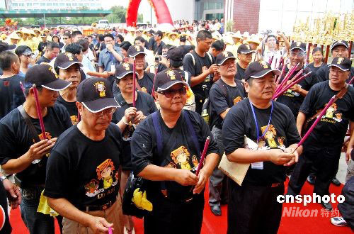 九月五日中午,臺(tái)灣鹿港天后宮進(jìn)香團(tuán)的三百多名媽祖信眾由金門分兩批乘船抵達(dá)泉州石井對(duì)臺(tái)客運(yùn)碼頭,進(jìn)行為期五天的謁祖進(jìn)香活動(dòng)。 這是鹿港天后宮開基媽祖一百九十一年后重回大陸謁祖。據(jù)介紹,鹿港天后宮媽祖,是三百多年前施瑯將軍從福建引請(qǐng)到臺(tái)灣的。曾于清嘉慶二十二年(一八一七年)在鹿港八郊人士護(hù)送回湄洲祖廟謁祖,迄今已一百九十一年,這次再回祖廟會(huì)香,見證兩岸媽祖神緣。中新社發(fā) 傅丹丹 攝