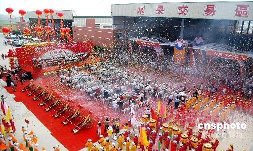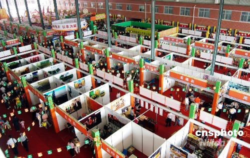 九月六日,首屆海峽兩岸農(nóng)產(chǎn)品采購訂貨會在福建南安閩臺農(nóng)產(chǎn)品市場舉行,來自兩岸農(nóng)產(chǎn)品經(jīng)銷商、采購商、企業(yè)家共三千多人出席。訂貨會設(shè)四百個標(biāo)準(zhǔn)展位,其中臺灣農(nóng)業(yè)主題館占一百一十七個。來自臺灣的一百多家企業(yè)集中展示蔬果、水產(chǎn)、肉類等臺灣農(nóng)業(yè)產(chǎn)品。當(dāng)天,兩岸客商共簽訂農(nóng)業(yè)合作項(xiàng)目及購銷總金額十九點(diǎn)六億元人民幣。圖為展銷會四百展柜無虛席。中新社發(fā) 傅丹丹 攝