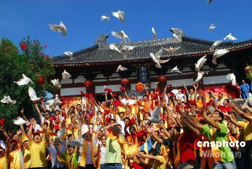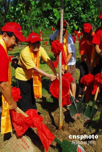 2008年9月6日至7日,海南省血液中心組織137名海南省2006-2007年國家無償獻(xiàn)血奉獻(xiàn)獎(jiǎng)金獎(jiǎng)獲得者和促進(jìn)獎(jiǎng)獲得者,到三亞南山文化旅游區(qū)參加以“奉獻(xiàn)讓我如此美麗”為主題的“菩提之旅”。獻(xiàn)血者點(diǎn)燃祈福蓮花燈、放飛和平鴿,并共植19棵菩提樹,建成全國首創(chuàng)的無償獻(xiàn)血功德林。中新社發(fā) 善平 攝