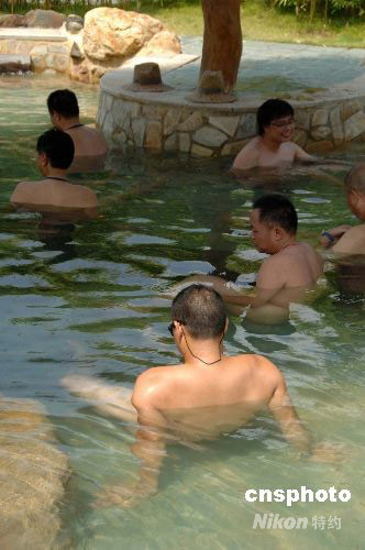 9月21日,廣東森波拉首屆“天體沐浴節(jié)”在一度假森林火山溫泉揭開神秘面紗,100多名“歡樂男女”沐浴在陽光、泉水、竹林花香中!疤祗w浴”被當(dāng)作一種回歸自然和享受健康的方式在廣東逐漸被大眾所接受。中新社發(fā) 梁永強 攝