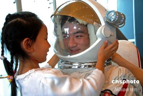 9月23日,“中國航天員體驗(yàn)營”啟動(dòng)儀式在北京天文館舉行。這場旨在拉近航天科技與普通大眾距離的航天體驗(yàn)活動(dòng)拉開序幕,給翹首企盼“神七”太空漫步的“航天熱”錦上添花,普通公眾也有了一個(gè)當(dāng)“航天員”的機(jī)會(huì)。中新社發(fā) 胡慶明 攝